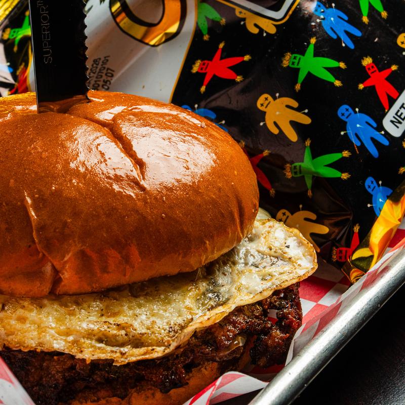 BURGER BATTLE AWARD WINNERS! Mozzarella, fried over med egg, Korean BBQ marinade, crack sauce on a brioche bun