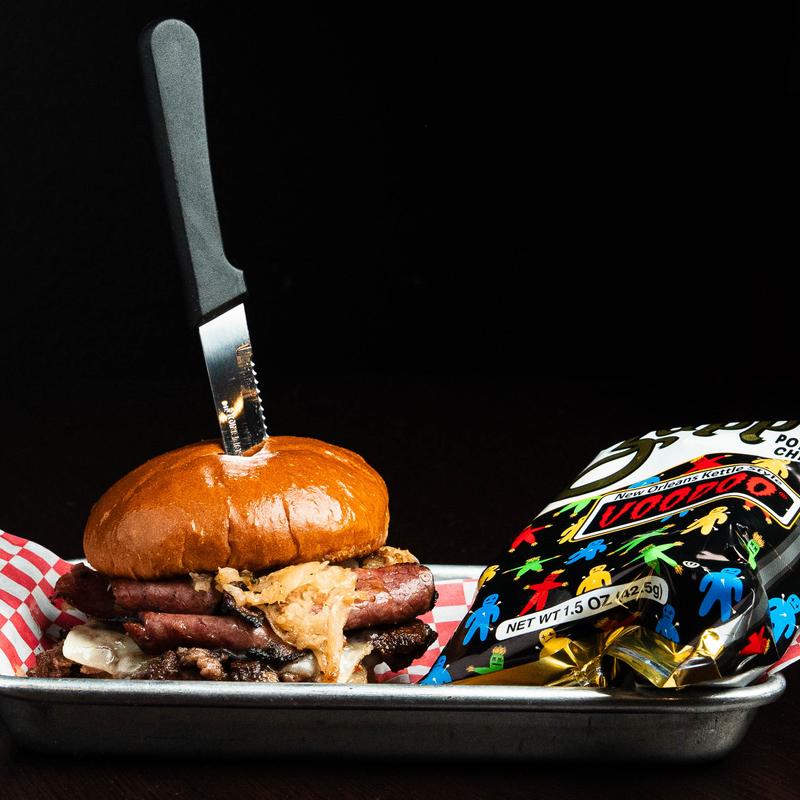 BURGER BATTLE AWARD WINNERS! American cheese, Jumbo’s rub, pickles, crack sauce, frizzled onions on a brioche bun